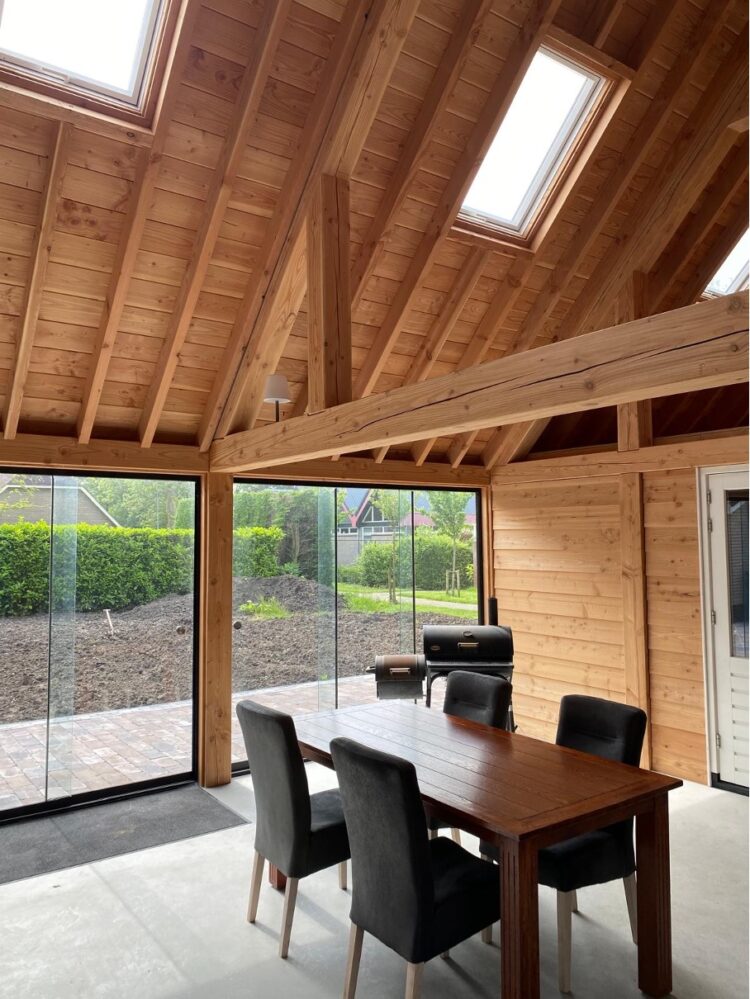 - Glazen schuifwanden: De veranda wordt uitgerust met glazen schuifwanden, die flexibiliteit bieden in gebruik en een prachtige overgang vormen tussen binnen- en buitenruimte. Hierdoor kun je optimaal genieten van de omgeving en het natuurlijke licht.