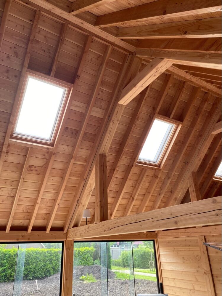 - Hardhouten raamkozijnen met dubbelglas: De schuur is voorzien van hardhouten raamkozijnen, die niet alleen duurzaamheid en een luxe uitstraling bieden, maar ook extra isolatie dankzij het dubbelglas.