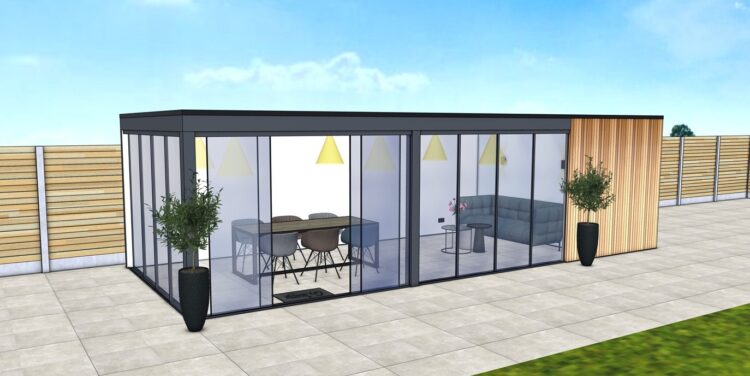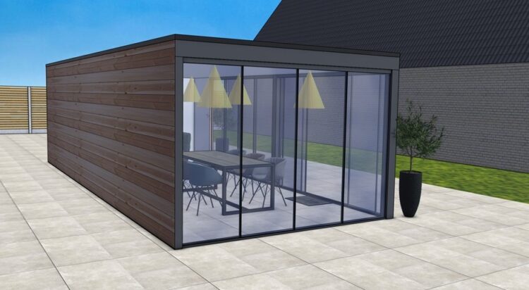 Moderne tuinkamer met als prachtig detail de verticale western red Cedar gevelbekleding.